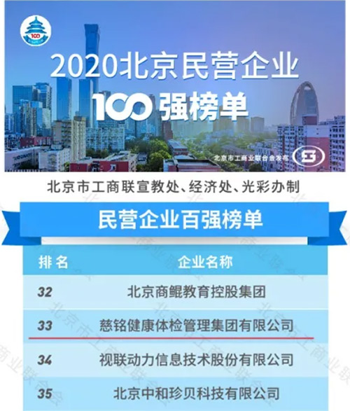 10月10日,由北京市工商聯(lián)與北京經(jīng)濟(jì)技術(shù)開發(fā)區(qū)管委會聯(lián)合舉辦的“2020北京民營企業(yè)百強(qiáng)發(fā)布會”在京順利召開,會上發(fā)布了2020北京民營企業(yè)百強(qiáng)調(diào)研分析數(shù)據(jù)、榜單并授牌。慈銘體檢憑借積極主動履行企業(yè)社會責(zé)任、熱心參與公益...